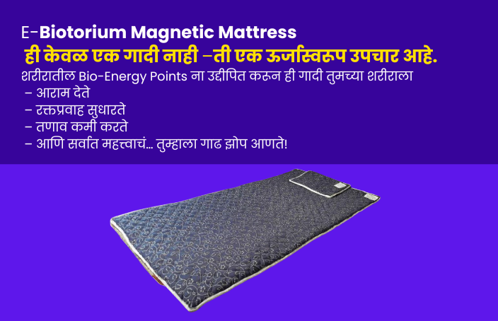जर होय, तर Ebiotorium ची चुंबकीय गादी हा तुमच्या समस्येचा नैसर्गिक, विज्ञान-समर्थित उपाय आहे! ही गादी शरीराच्या अंतर्गत ऊर्जा प्रवाहाला संतुलित करून झोप, वेदनांमध्ये आणि एकूण आरोग्यात लक्षणीय सुधारणा करते.